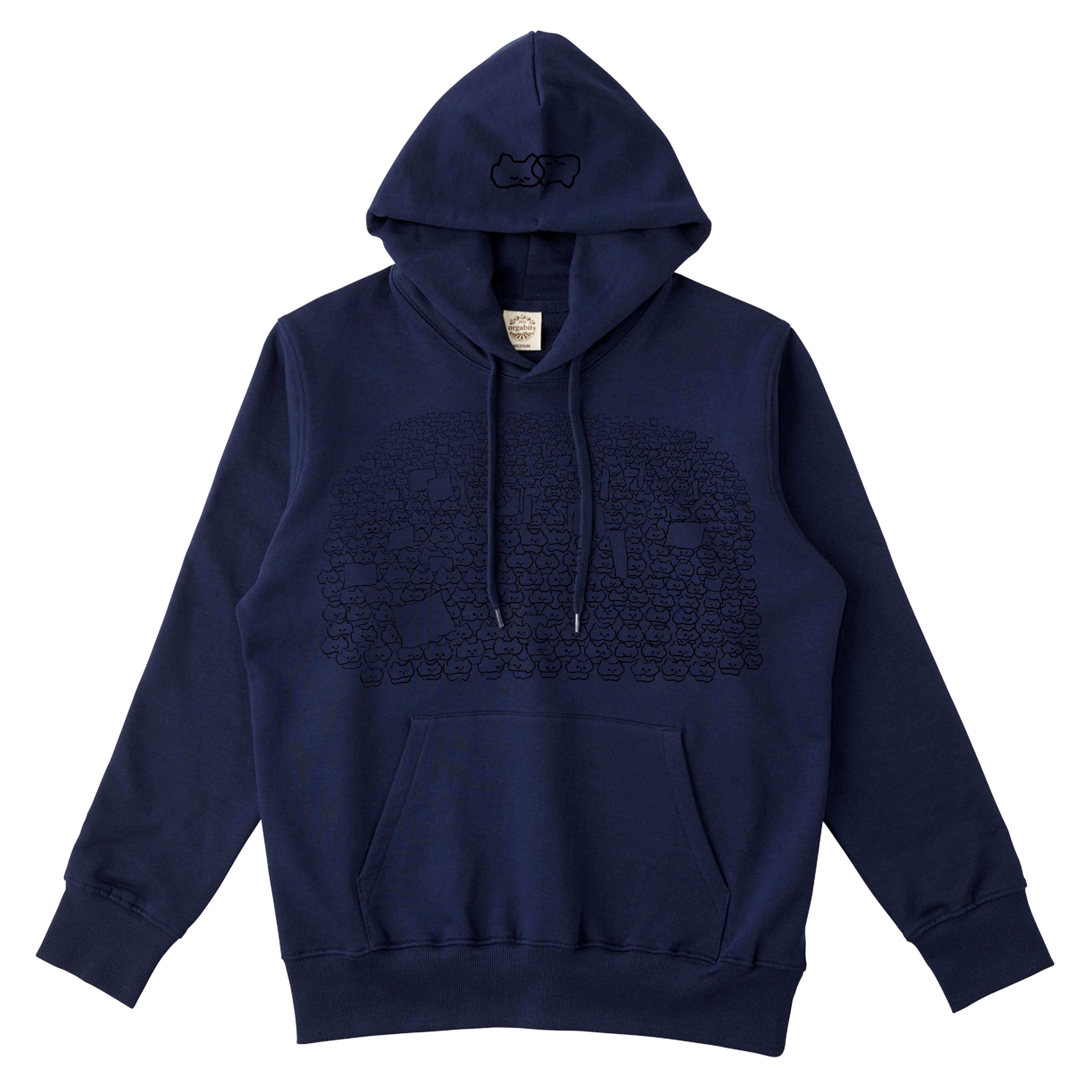 デモをするねこたちの絵がプリントされたプルオーバーパーカです。